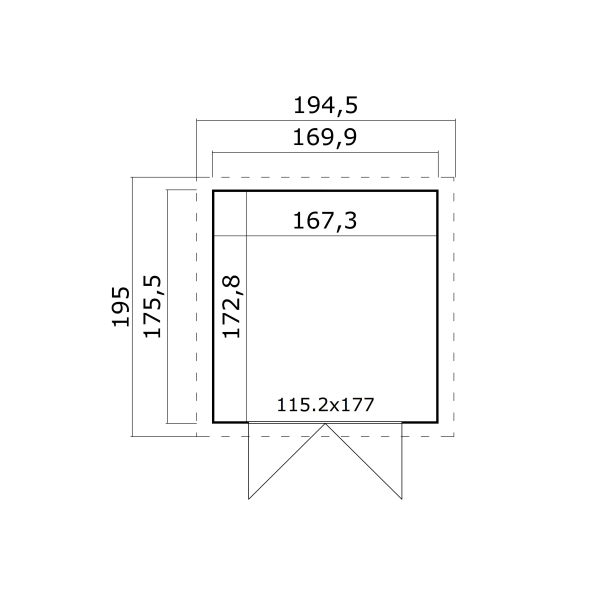 Välismõõdud: 176 x 170 cm.