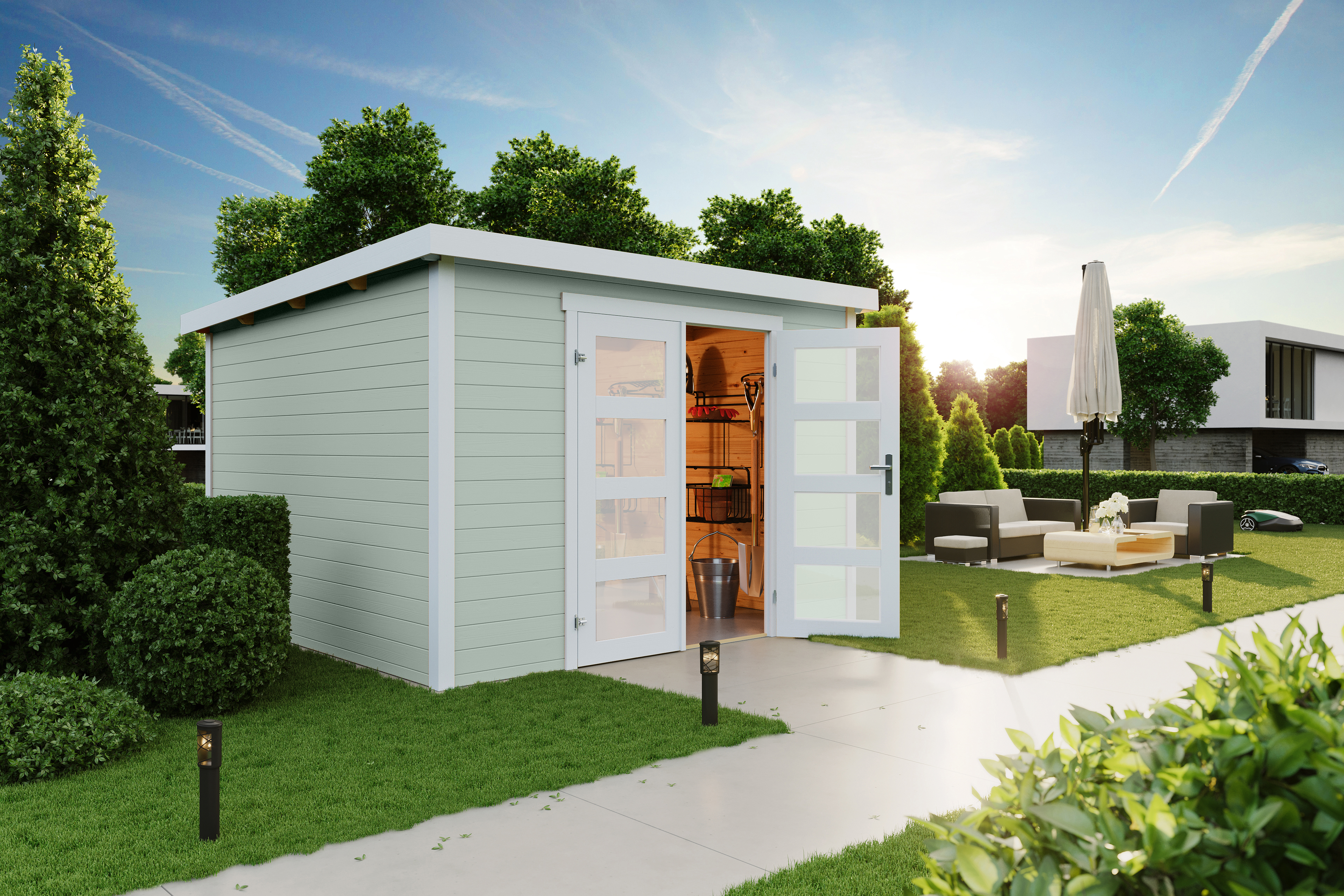 Välismõõdud: 300 x 300 cm. Seinte kõrgused 211 ja 200 cm.
