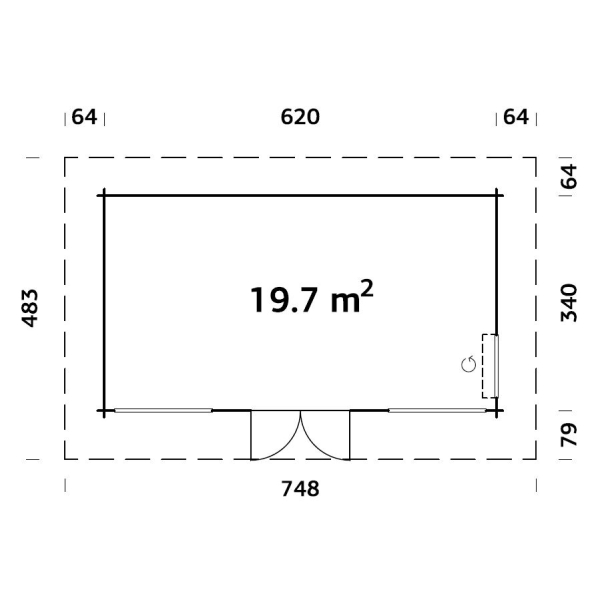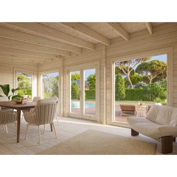 - karastatud pakettklaasidega pöörd-kaldavatav aken 82 x 198 cm(võimalik paigaldada soovitud otsaseina), 2 kinnist akent 155 x 206 cm, kummitihendid, alumiiniumist tilganinad