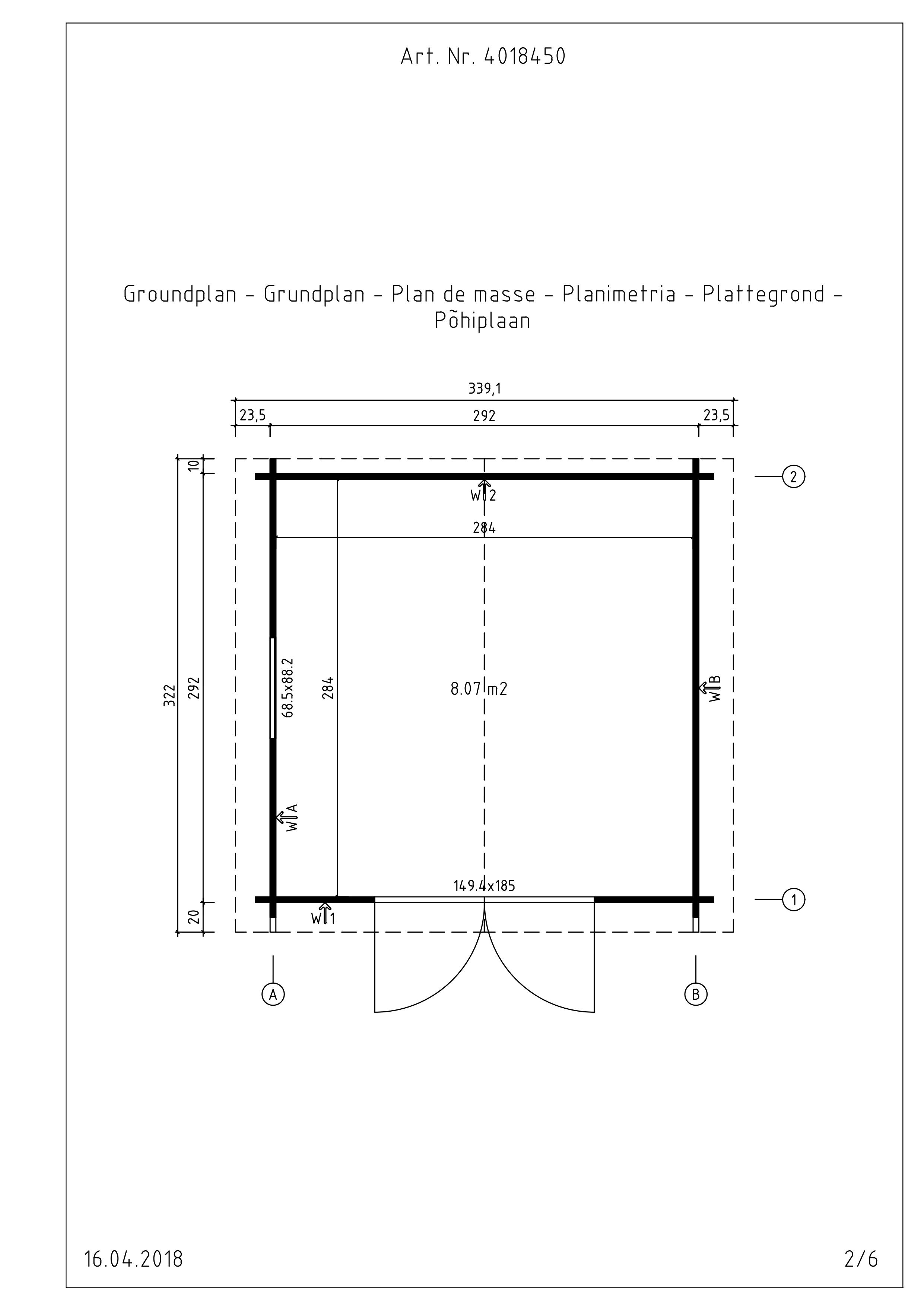 - harja kõrgus 245 cm, räästa kõrgus 194 cm