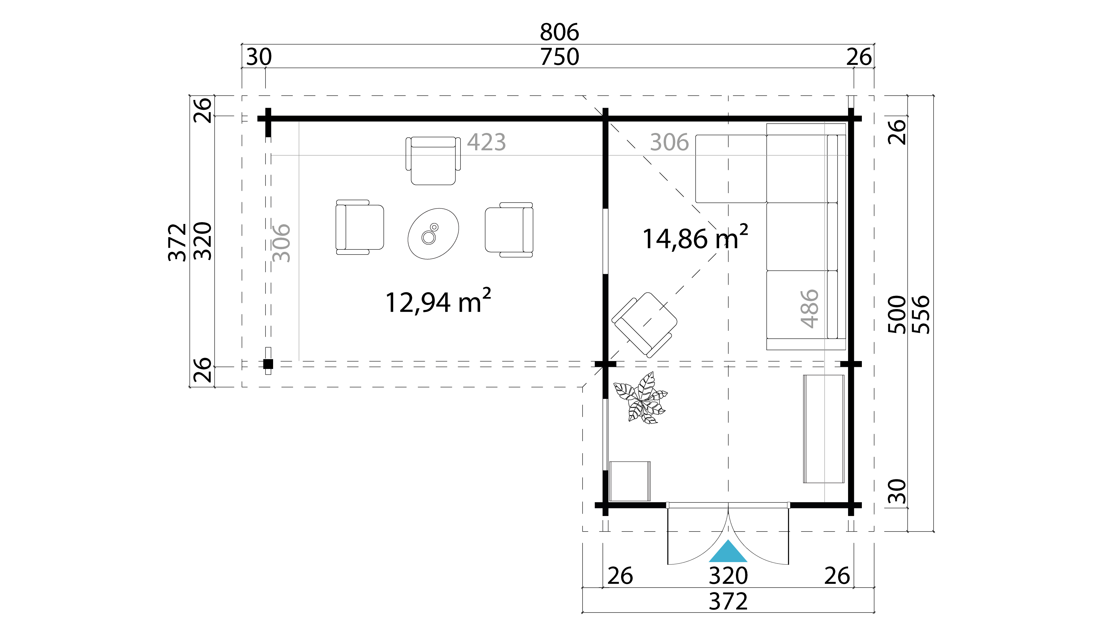 - harja kõrgus 306 cm ja seina kõrgus 245 cm