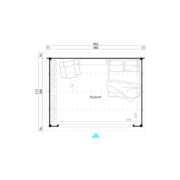 Välismõõdud: 3,8 x 2,8 m