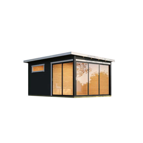 - alumiiniumraamiga pakettklaasiga liuguksed 2041 x 2026 mm ja 3039 x 2026 mm, puust klaasitud siseuks 835 x 1900 mm, karastatud klaasiga leiliruumi uks