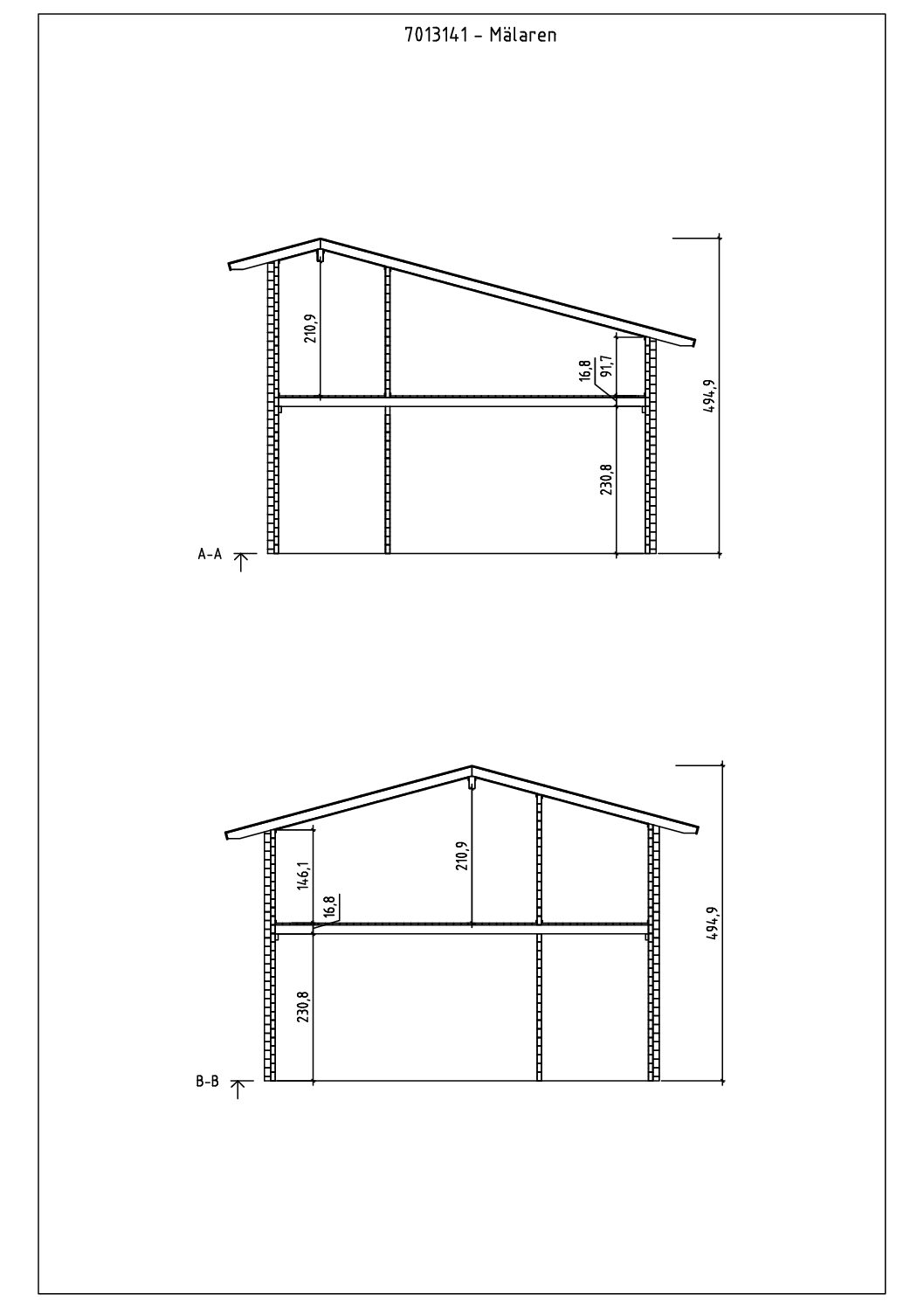 - harja kõrgus 492 cm ja seina kõrgus 354 cm