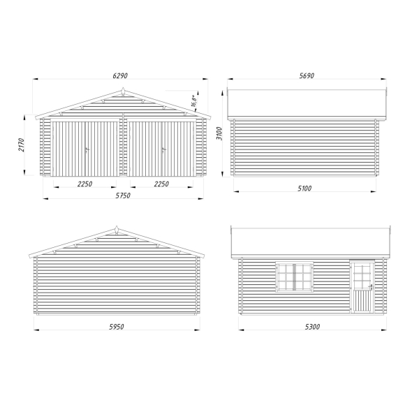 - 2 puidust garaažiust silinderlukuga 225 x 194 cm (ilma väravata või tõsteuksega varustatult saadaval eraldi garaažid)