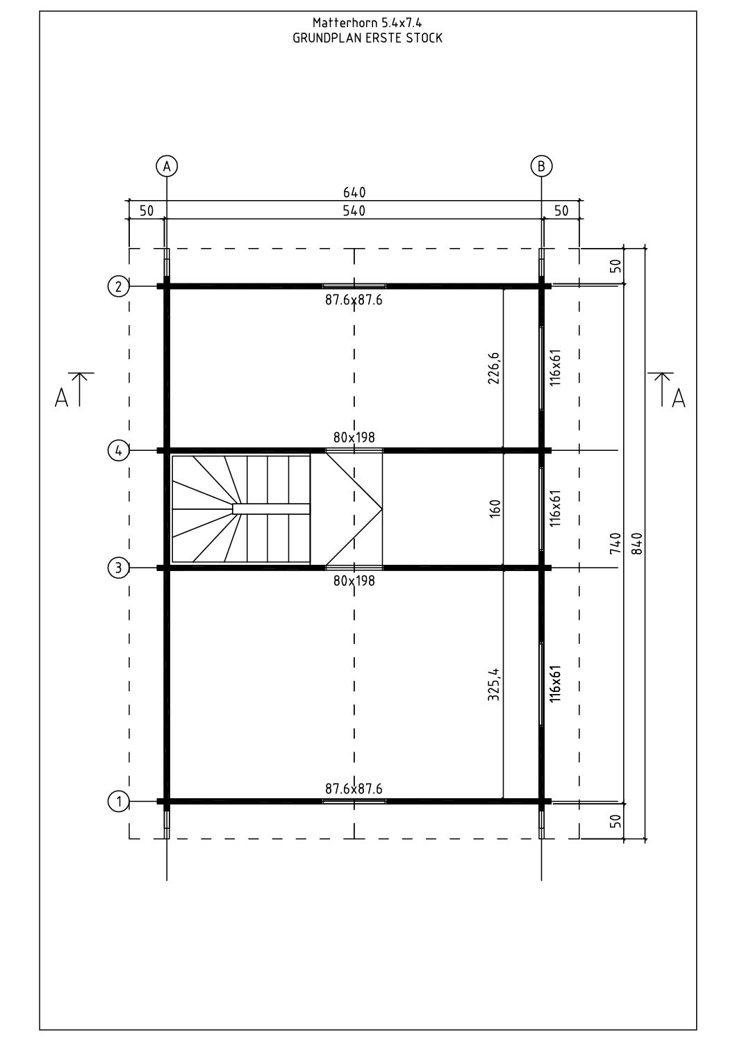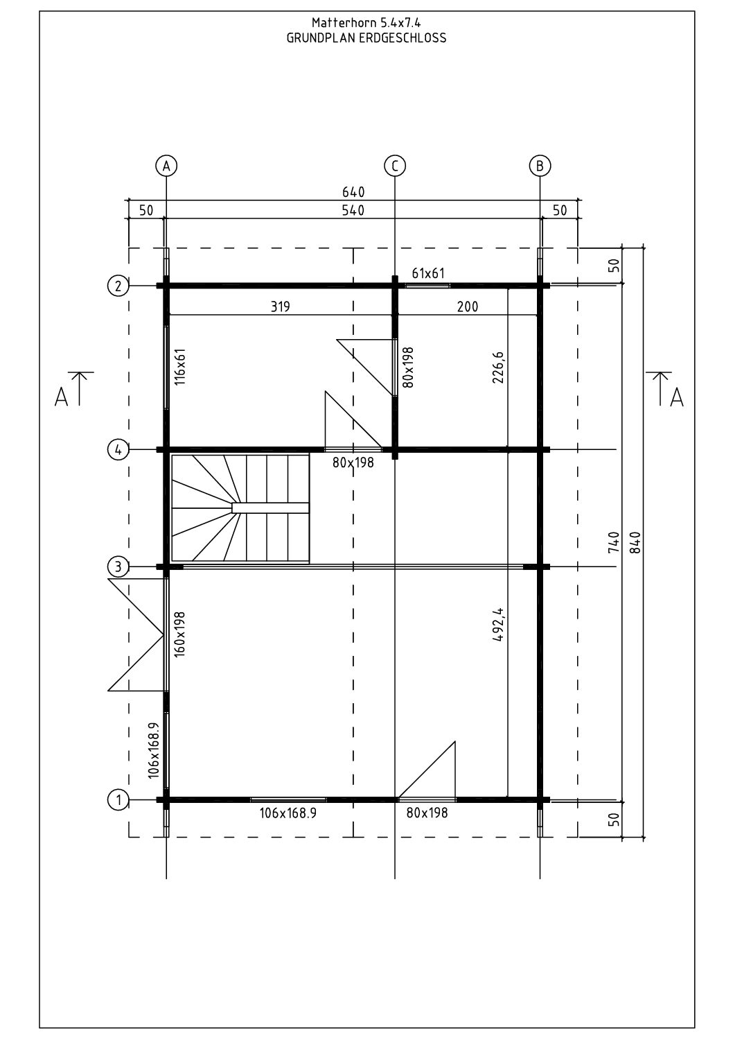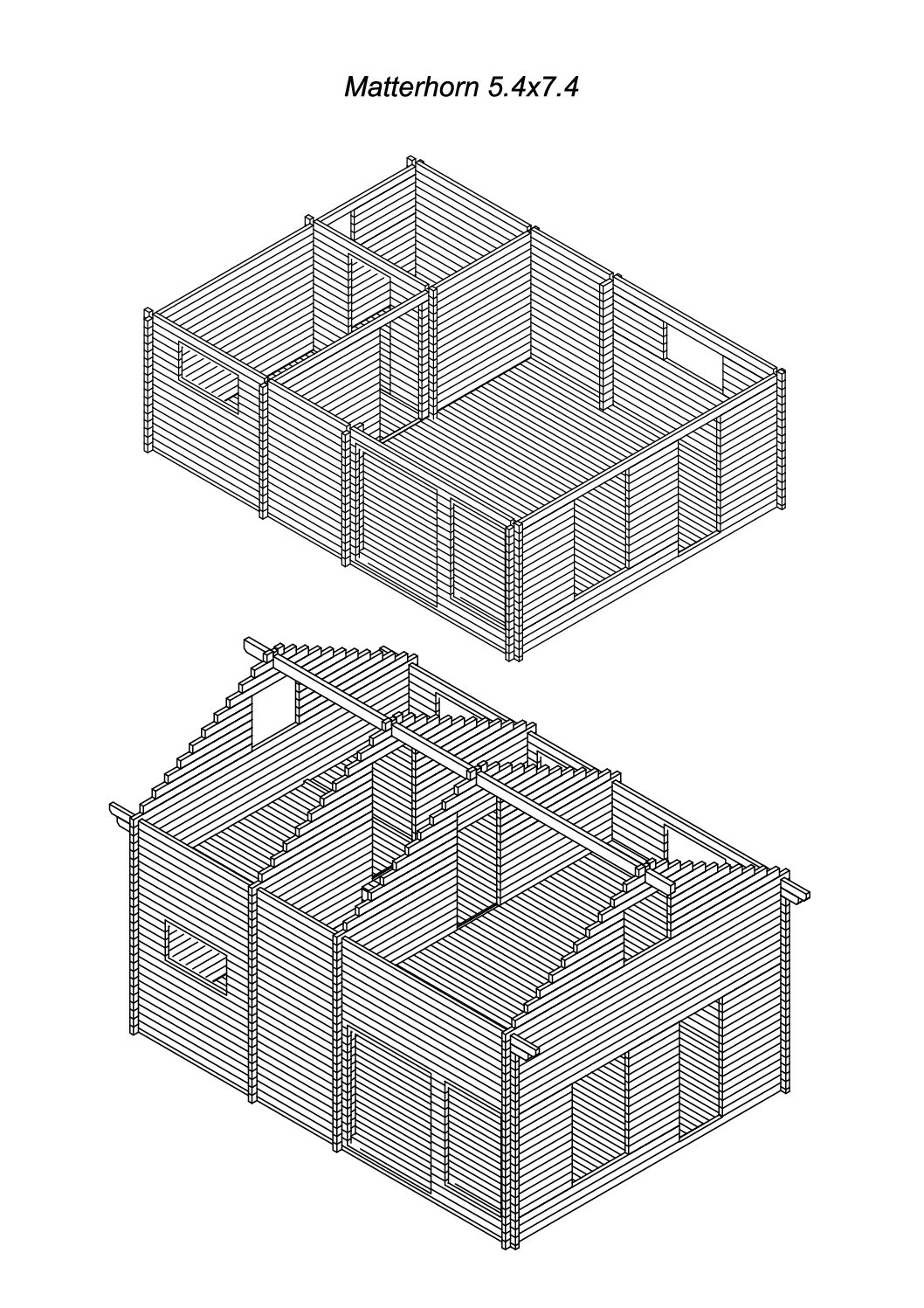 Välismõõdud: 7,4 x 5,4 m. Freespalk 70 või 92 mm. Harja kõrgus 5,17 m, küljeseinte kõrgus 3,6 m.