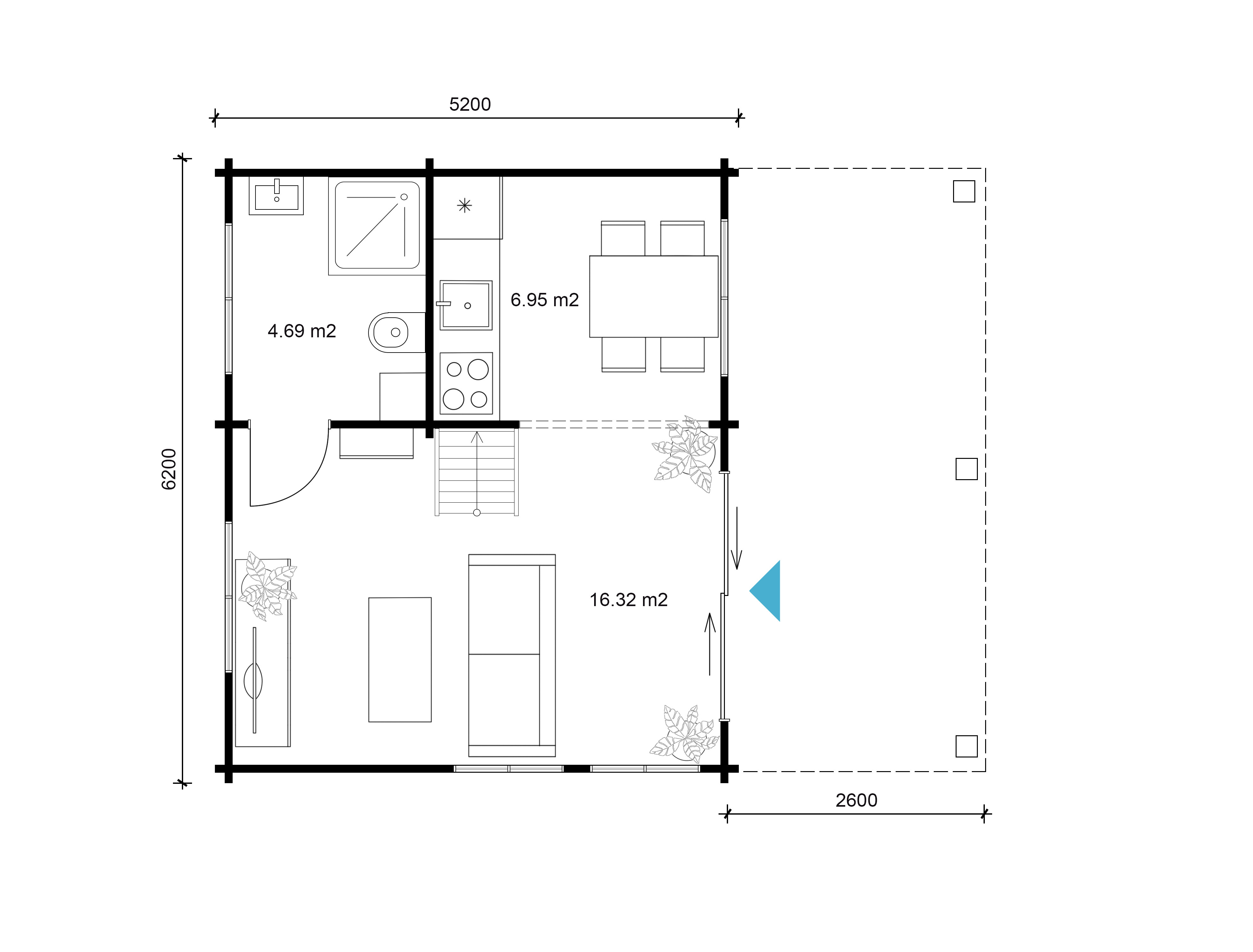 Mõõdud: 600 x 500 cm. Seinakõrgused: 480 ja 272 cm.