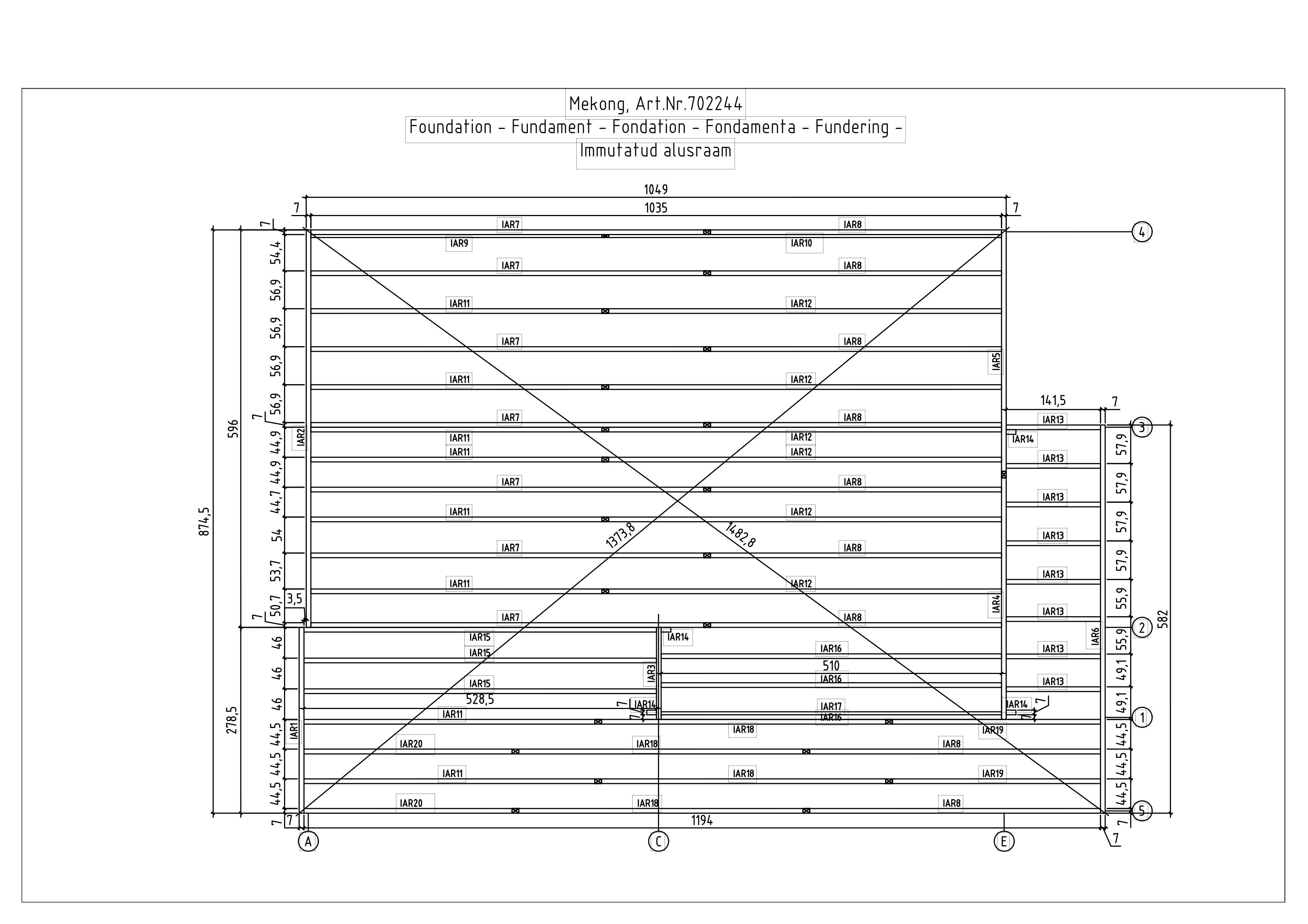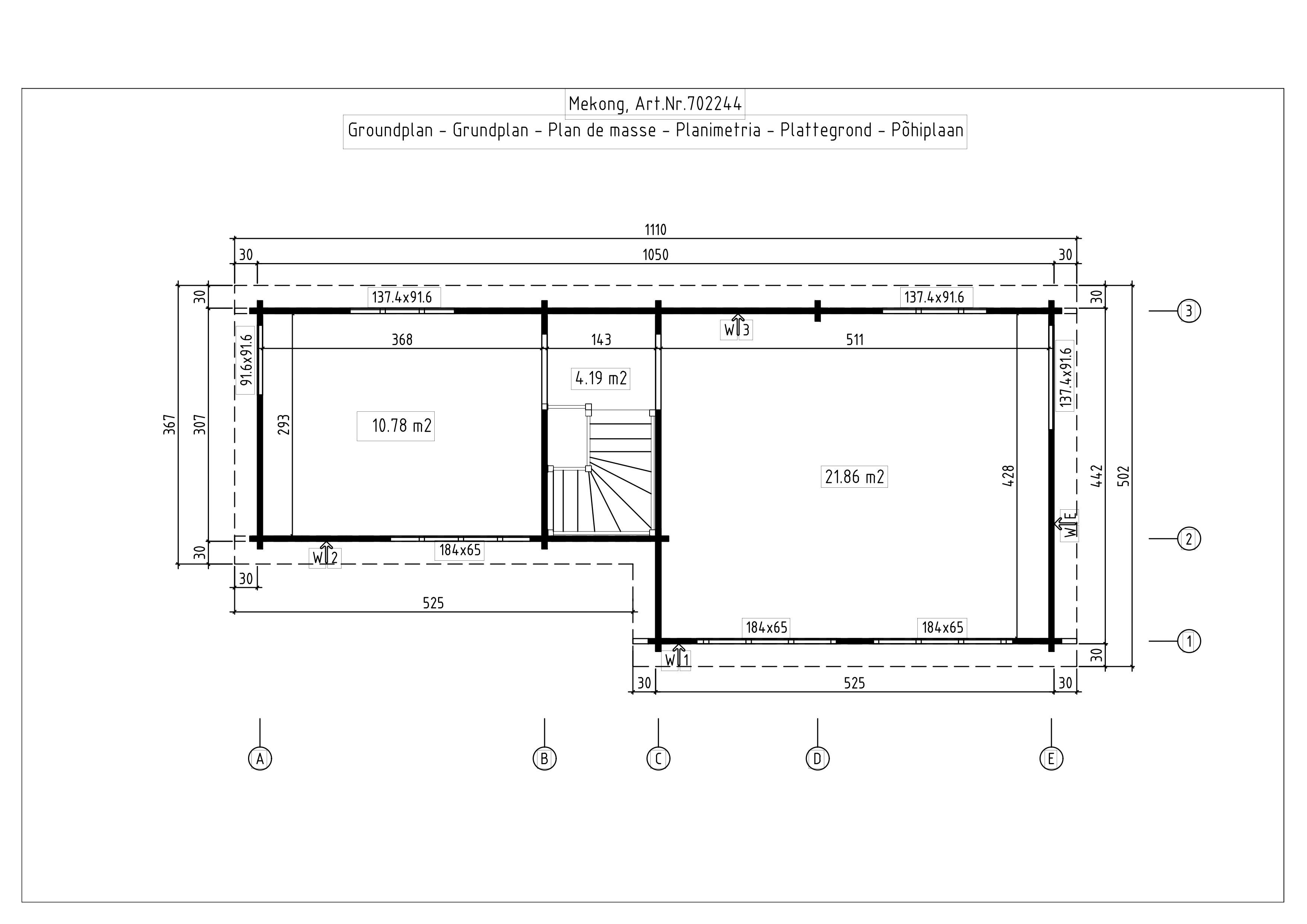 Välismõõdud: 1050 x 735 cm. Seina kõrgused 211 cm ja 483 cm.