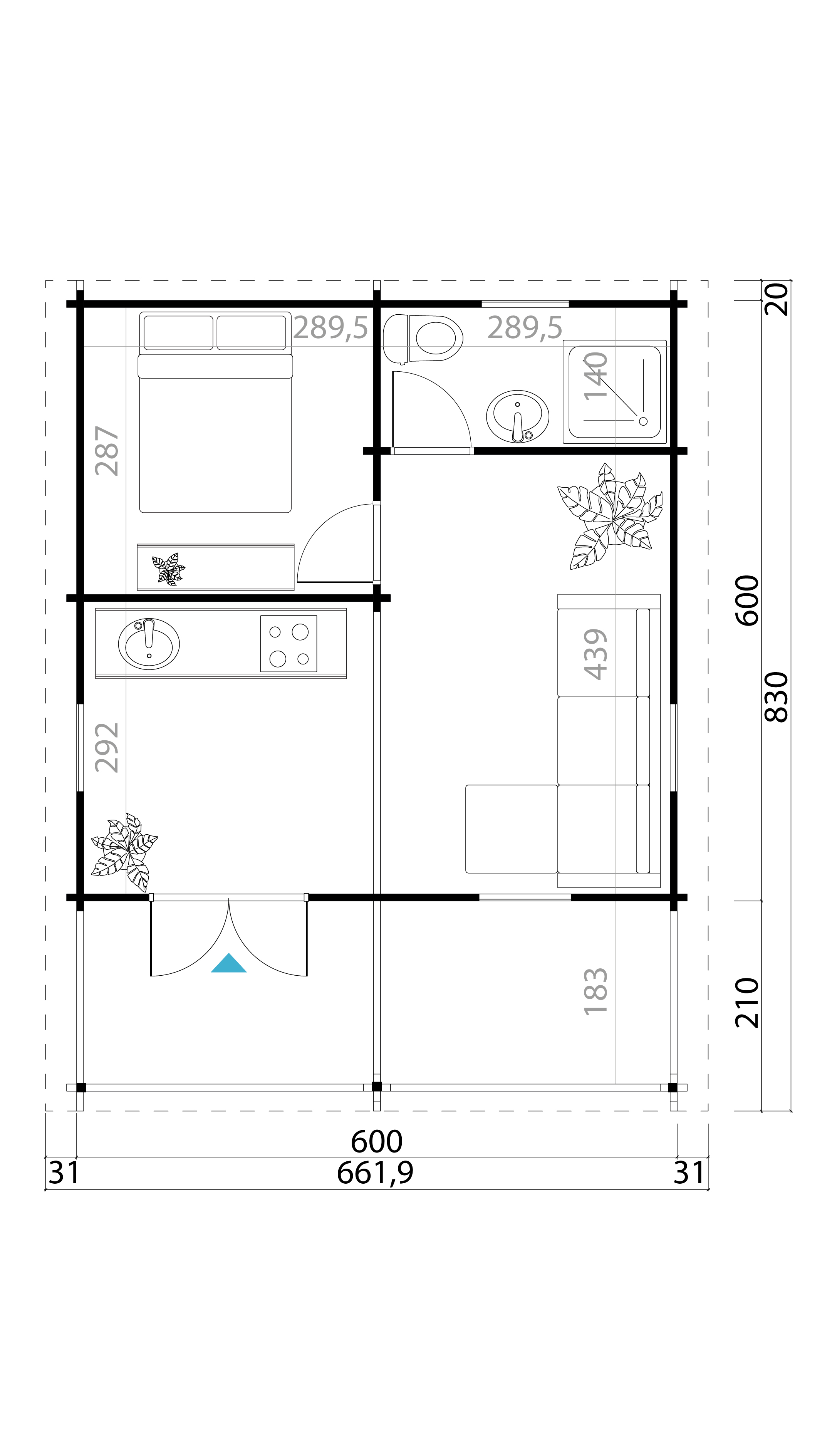 Välismõõdud: 6,0 x 6,0 m + terrass 6,0 x 2,0 m