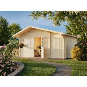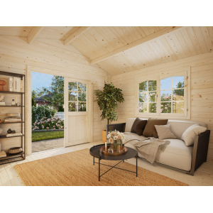 Mökki Cecily 14,2 m² 70 mm höylähirsi, alumiiniliukuovet-ikkunat lämpölaseilla