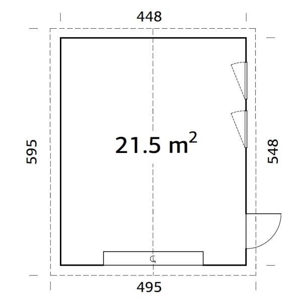 Ulkoseinämitat: 448 x 548 cm.