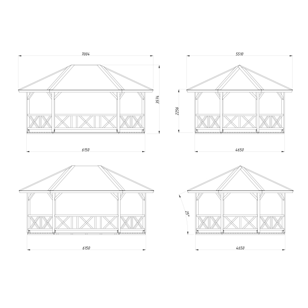 - harjakorkeus 362 cm, räystäskorkeus 207 cm
