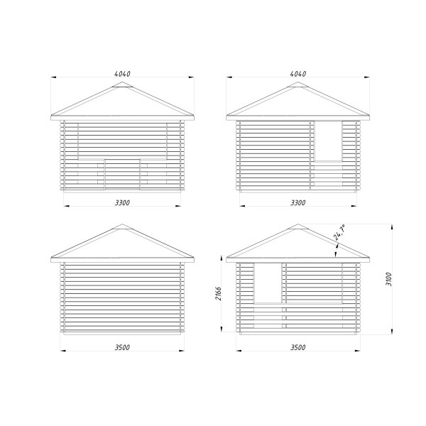 - harjakorkeus 310 cm, räystäskorkeus 217 cm