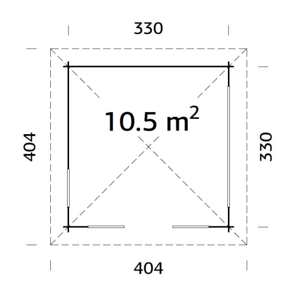 Ulkoseinämitat: 3,3 x 3,3 m.