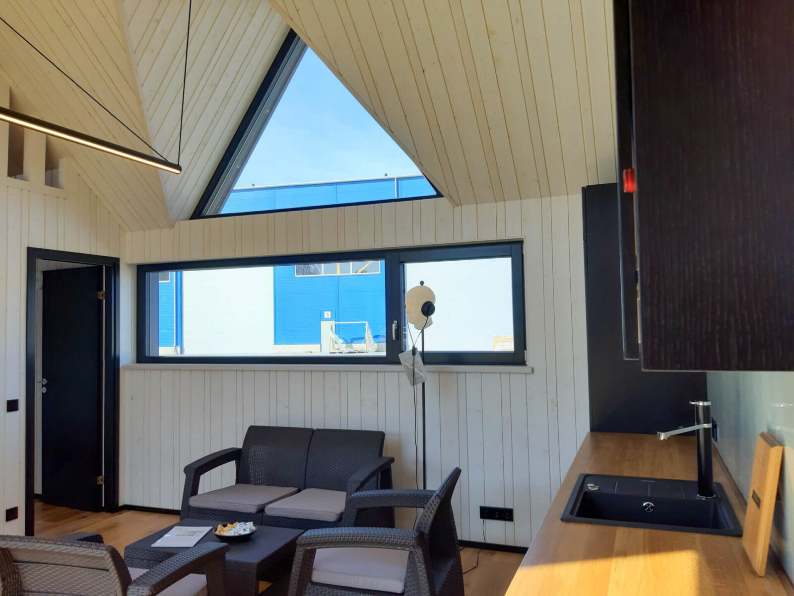 Muuttovalmis vesi-, viemäri- ja sähkökytkennän jälkeen.