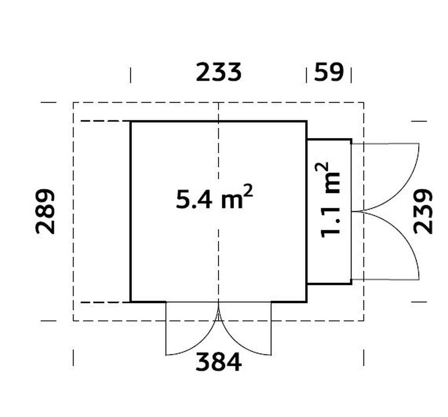 Ulkoseinämitat: 239 x 233 cm.