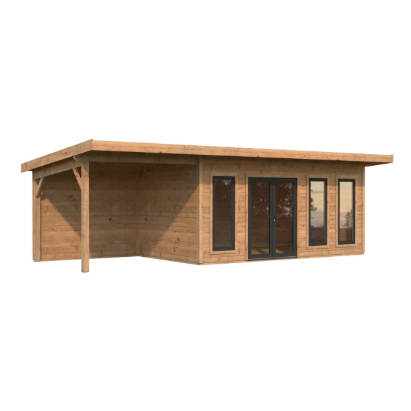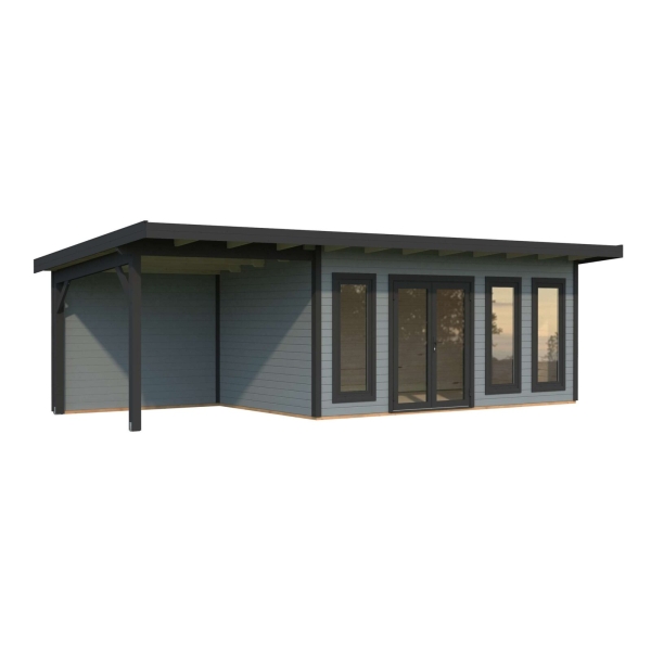 Vierasmaja Aura 15,2+katos 7,9m² sileät kulmat, alumiinituplaovi ja -ikkunat lämpölaseilla
