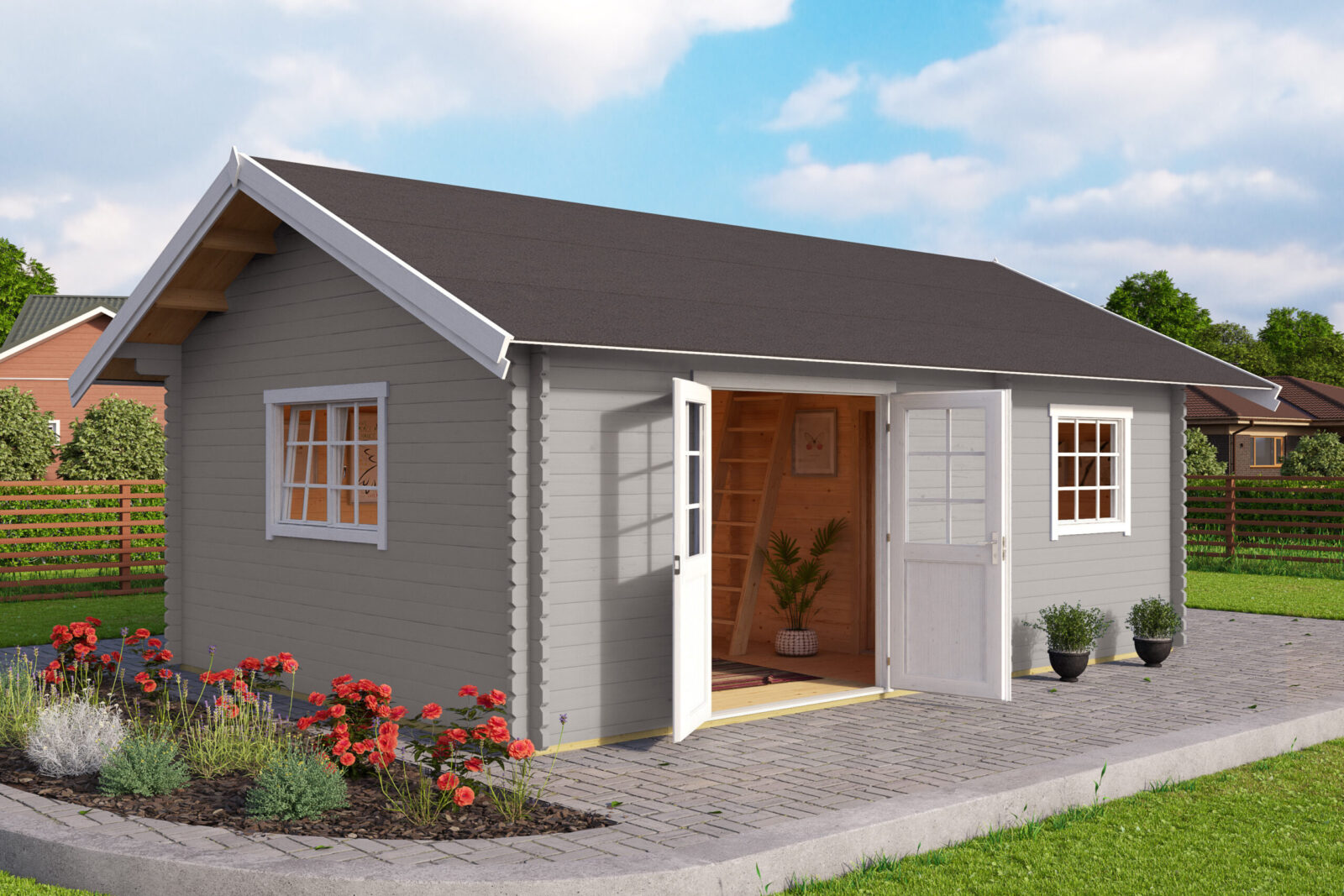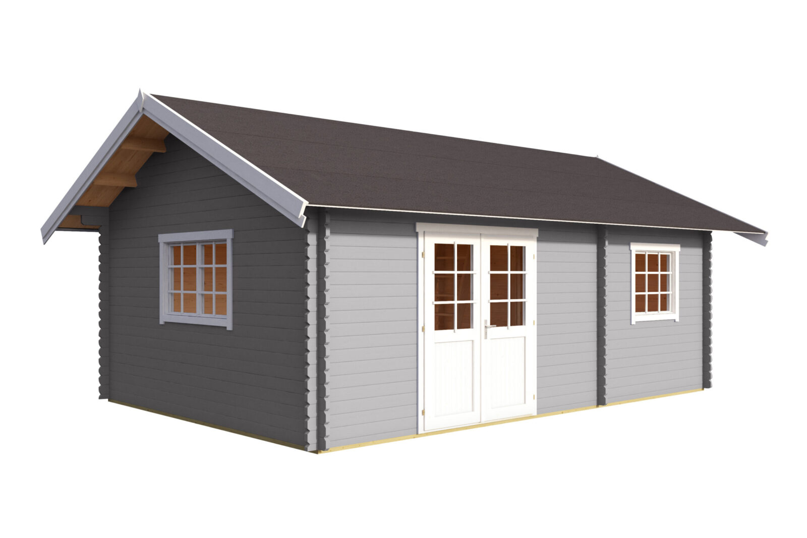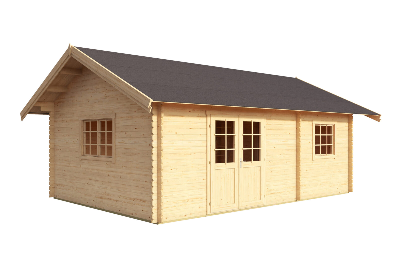 Ulkoseinämitat: 575 x 390 cm. Harjakorkeus 331 cm, seinäkorkeus 234 cm.
