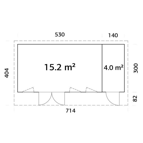 Välismõõdud: 6,7 x 3,0 m.