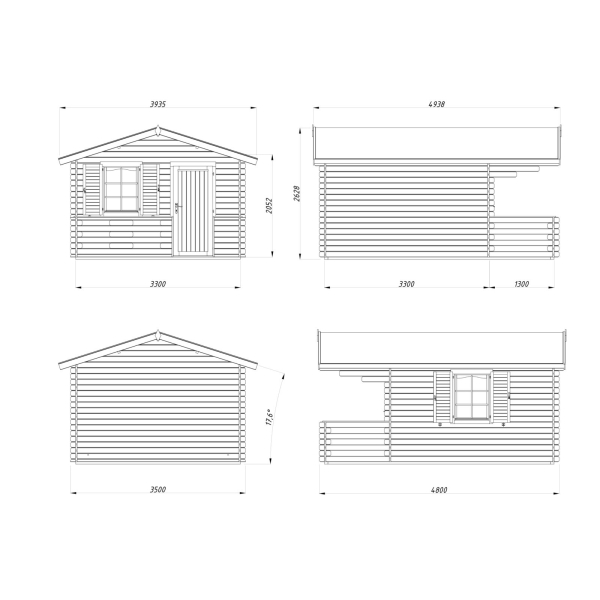 Välismõõdud: 3,3 x 3,3(4,6) m.