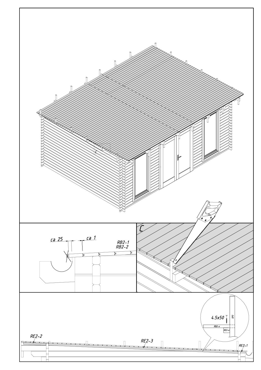 - katuse pindala 21 m² ja kalle 2.4º, räästas ees 0,5 m