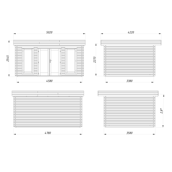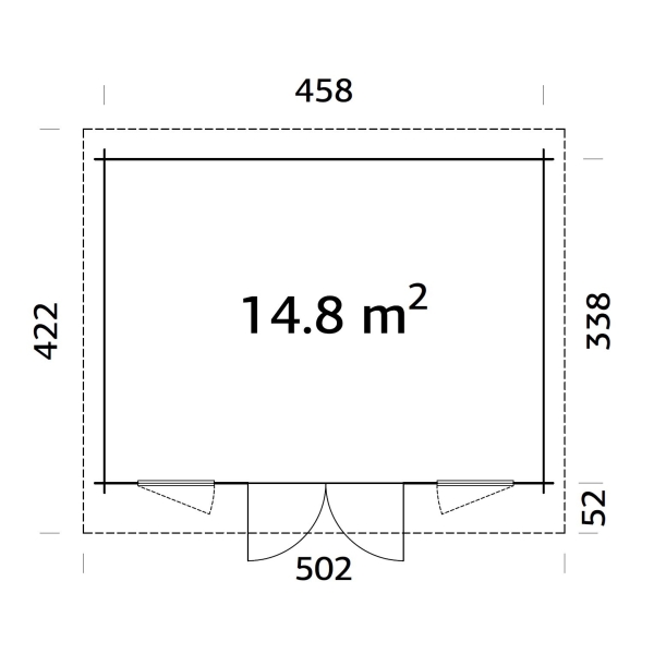 Välismõõdud: 4,58 x 3,38 m.
