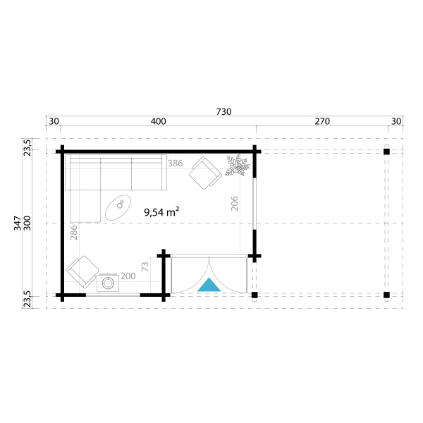 - harja kõrgus 243 cm, seina kõrgus 204 cm