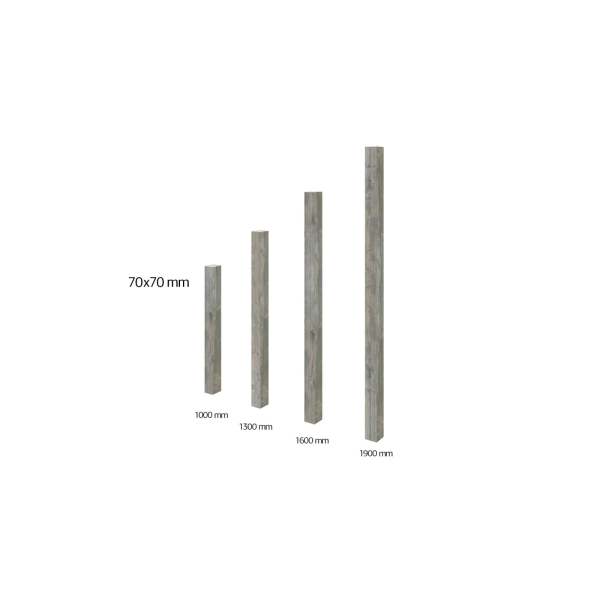 Faasitud nurkadega okaspuidust postid 70 x 70 mm.