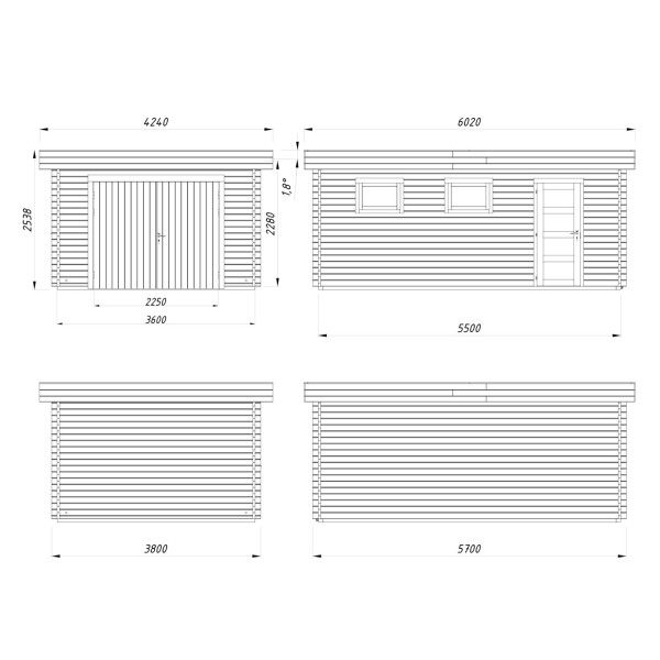 Välismõõdud: 3,6 x 5,5 m.