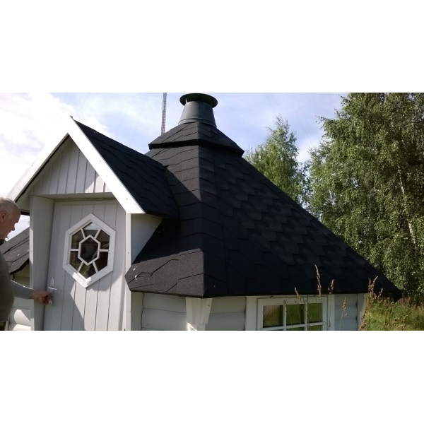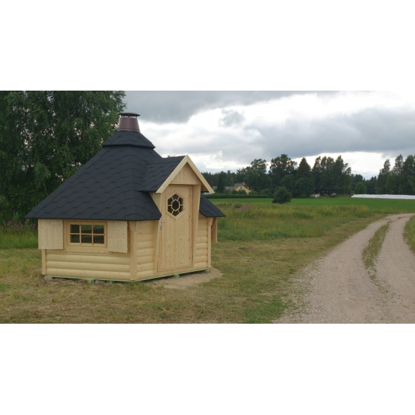 Hinnas KÕIK: seinakilbid(10 palgi kõrgus), muud puitosad, OSB plaadist räästad, aknad(1 avanev), raamuks, grill suitsukogujaga teras 2 mm, kinnitusvahendid, kärgkatusekate, põrand ja koostejuhend. Pindala 9,2 m2.