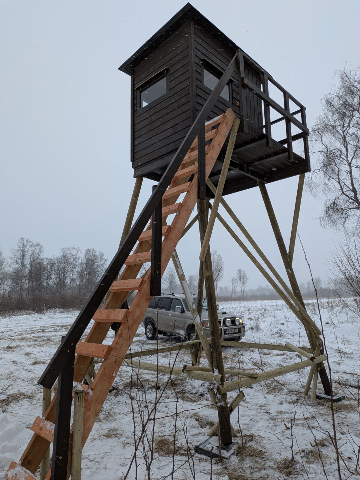 Mugava istumiskohaga jahi- ja vaatlustorn. Sügavimmutatud puit(Ø 80 mm jalad).