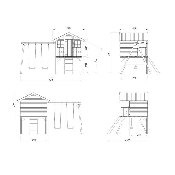 Mängumaja Tobi 2,1m² koos 2-kohalise kiigega