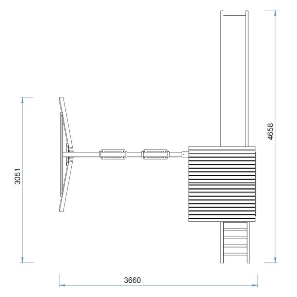 Mõõdud paigaldatuna 4,7 x 4,3m. Vastab EU standardile EN71. Eesti toode. Nõutav turvaala 8 x 7 m.