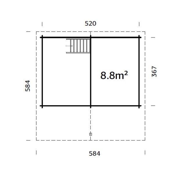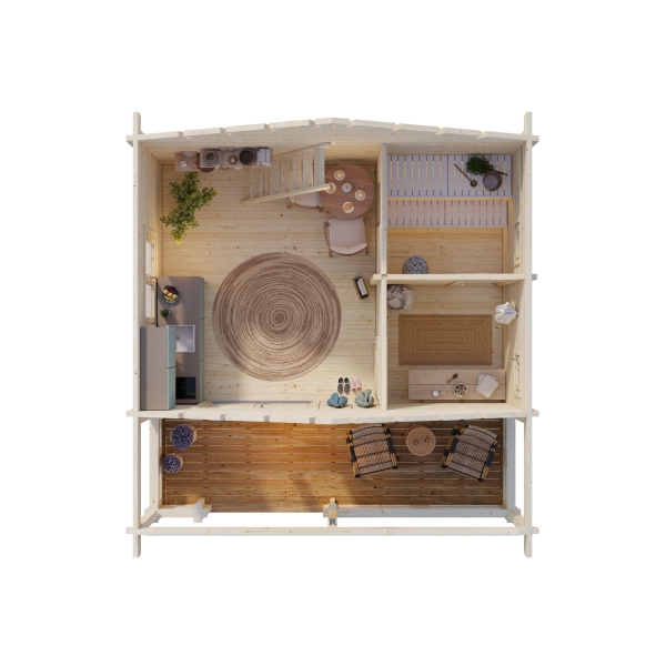 • 1. korruse sisepindala 17,4 m2 , magamiskorrus 8,8 m2  ja terrass 7,4 m2