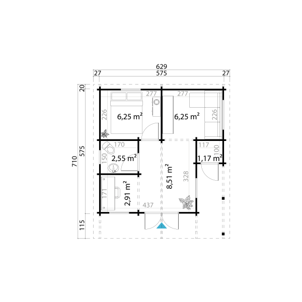 - harja kõrgus 306 cm ja seina kõrgus 218 cm