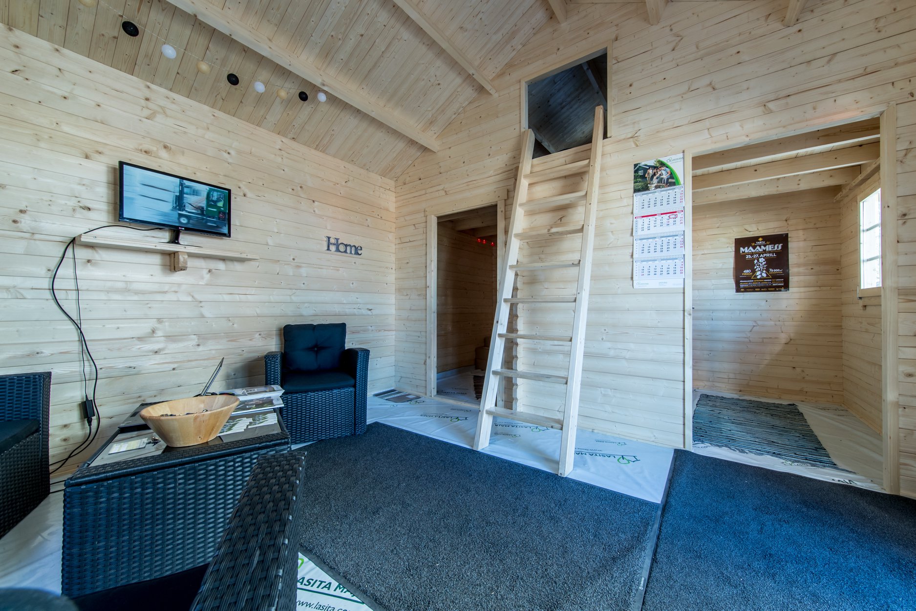 - 3 ruumi ja magamisase 2.korrusel. Keskmist seina võimalik paigaldamise käigus ehitada nii, et käigu ava oleks väiksemal ruumil ning suuremale parempoolsele ruumile saab paigaldada üksikukse.