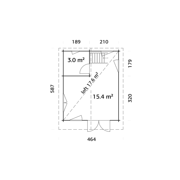- harjakorkeus 432 cm, räystäskorkeus 283 cm