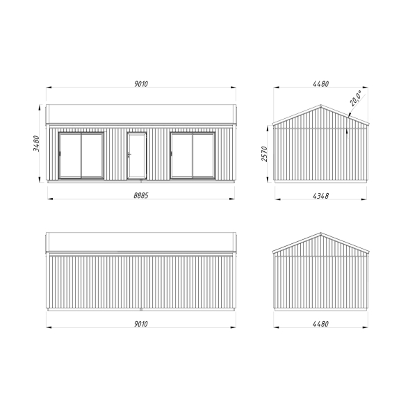 - seina kõrgus 348 cm ja harja kõrgus 257 cm