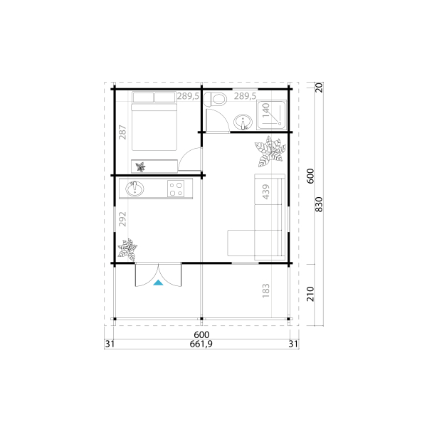Välismõõdud: 6,0 x 6,0 m + terrass 6,0 x 2,0 m