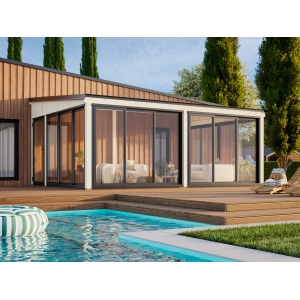 Kesähuone Saaga 23,3 m² alumiiniliukuovilla ja kulkuovella UUTUUS !