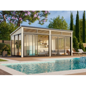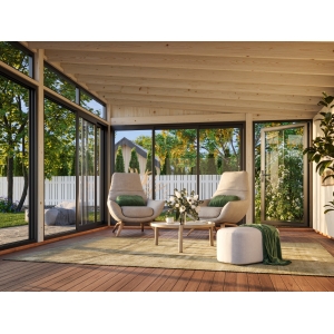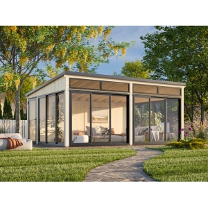 Kesähuone Saaga 16,6 m² alumiiniliukuovilla ja kulkuovella UUTUUS !