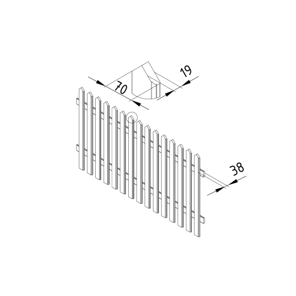 Laudat 19 x 70 mm. Runkolankun paksuus 38 mm.