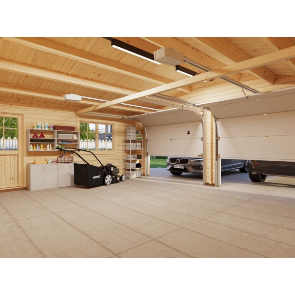 Autotalli Reigo 28,4 m² kahdelle autolle nosto-ovilla