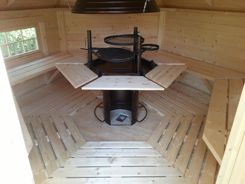Täydellinen puuosatoimitus: seinäelementit(10 hirsikorkeus), OSB levystä räystäät, ikkunat(1 avattava), ovi, grilli, kupu ja piippu (teräs 2 mm), kiinnitystarvikkeet, palahuopa, lattia ja kasausohje.