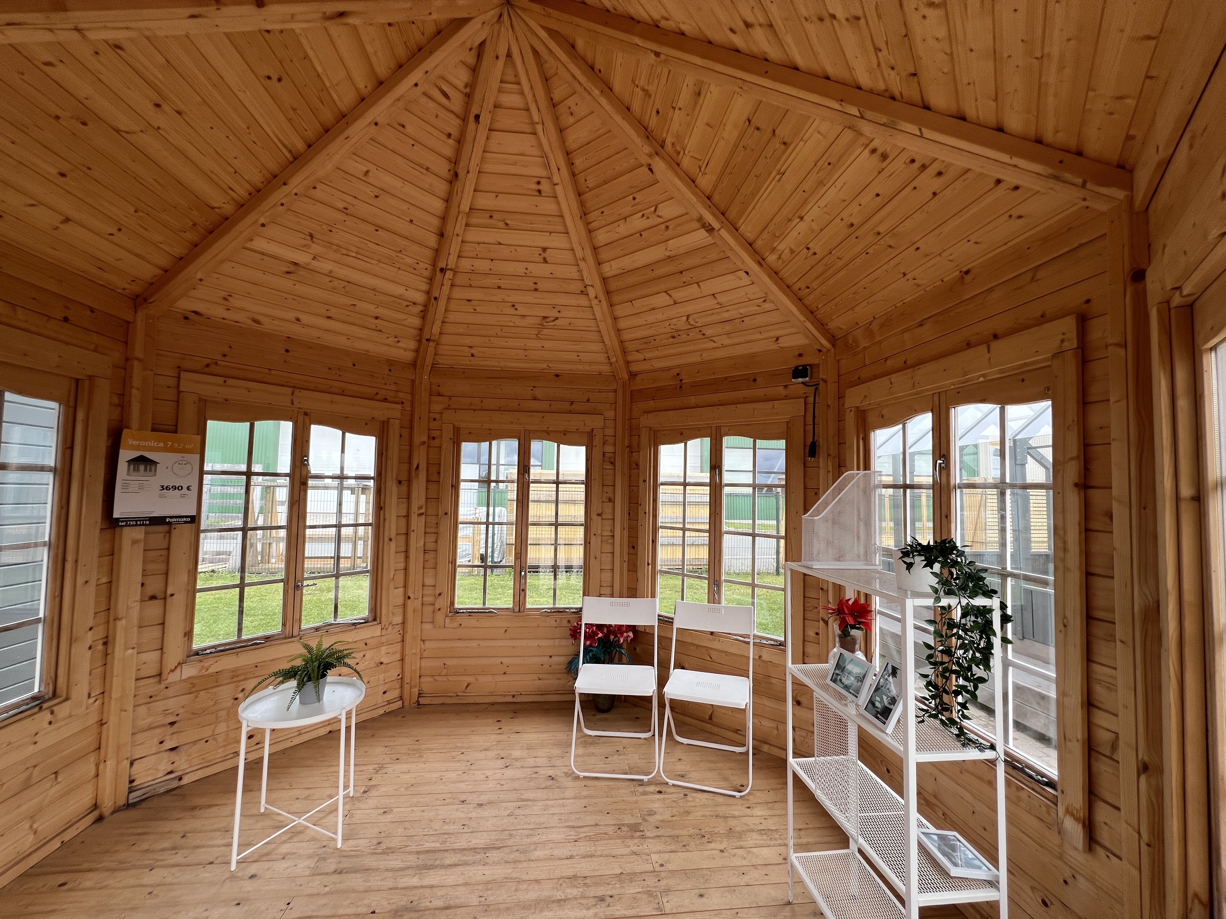 Tehtaalla asennettu esittelyhuvimaja Veronica 9,2 m² 7 ikkunalla