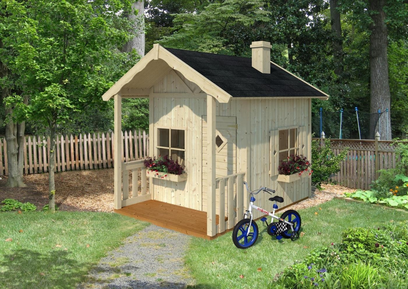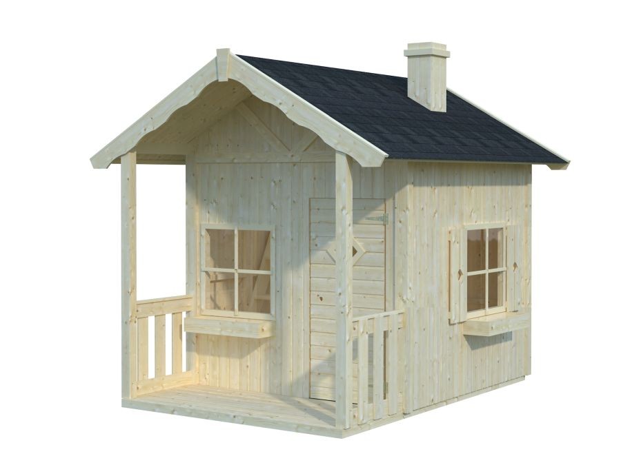 Täydellinen puuosatoimitus, ikkunat, ovi, kiinnitystarvikkeet, kasausohje. Leikkimökki toimitetaan puuvalmiina, sitä ei ole maalattu eikä hinta sisällä kattohuopaa.