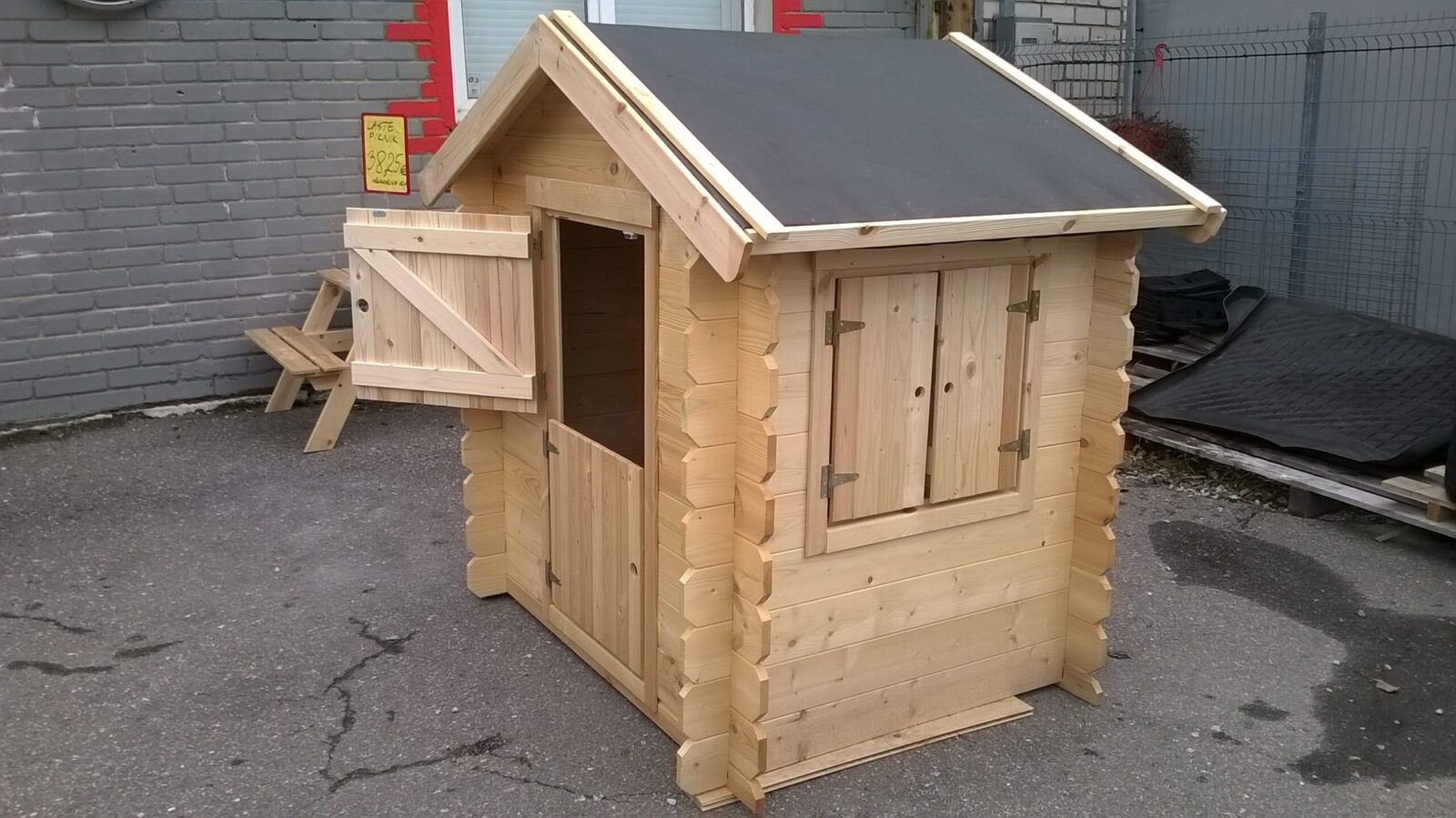 Täydellinen puuosatoimitus, 1 ikkuna(ilman lasia), ovi, kiinnitystarvikkeet, asennusohje. Leikkimökki toimitetaan puuvalmiina, sitä ei ole maalattu eikä hinta sisällä kattohuopaa.