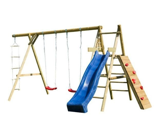 Komea leikkikeskus kiipeilyseinällä 5-lle lapselle.