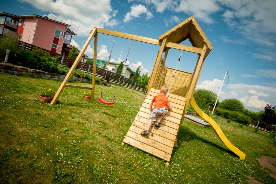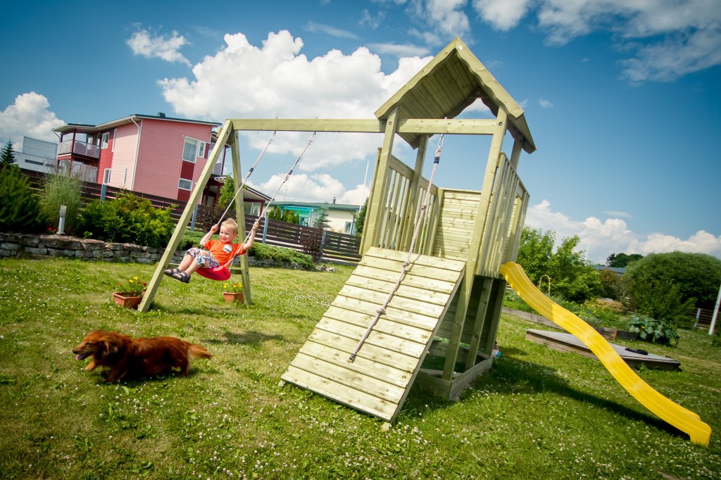Mitat asennettuna: 5,0 x 3,1 x 3,0 m (liukumäellä)