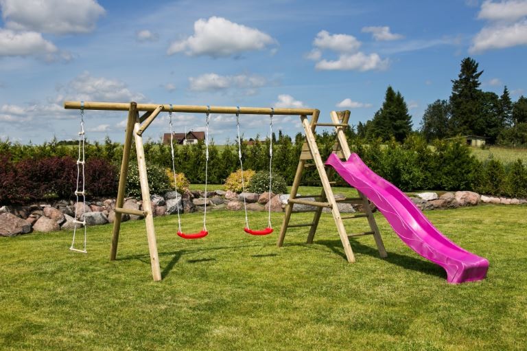 Leikkiteline kiinnitetään 6 ankkurilla( F- tai ruuviankkuri). Toimitukseen sisältyy: painekyllästetty puurunko, kiinnitystarvikkeet, 2 keinua, köysitikkaat ja asennusohje. Katso tästä asennusvideo video